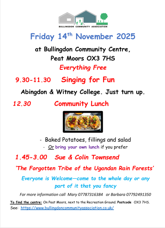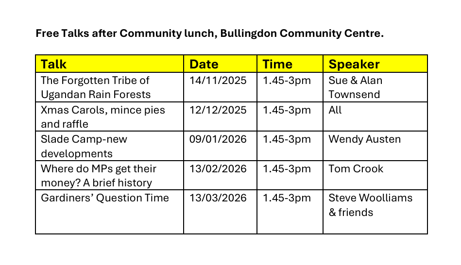 Community lunch and talks, Friday, 14th November - ALL WELCOME